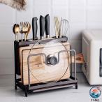 まな板スタンド 包丁立て 鍋蓋スタンド 水受け皿・お箸立て付き キッチンツールスタンド 多機能収納ラック 水切りラック おしゃれ 北欧デザイン