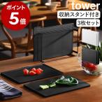 特典付[ 食洗機対応 抗菌まな板3枚セット タワー ]山崎実業 tower スタンド付き 滑り止め 抗菌 四角 黒いまな板 yamazaki 公式 ブラック ホワイト 8184 8185