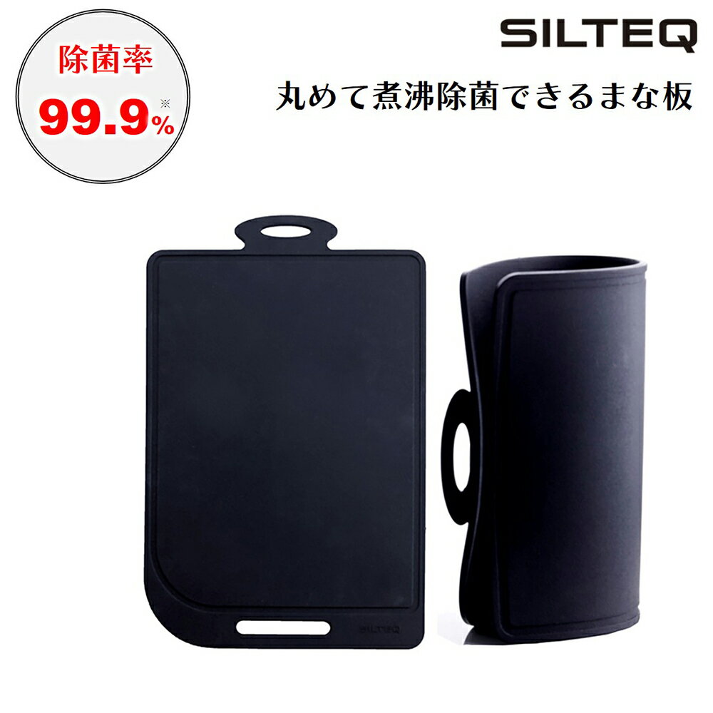 シルテック プラチナシリコ ーン まな板 ブラック【丸めて煮沸除菌 カッティングボード キャンプクッキング アウトドア 煮沸 消毒 除菌 静音 電子レンジ除菌 フック掛け きれいのミカタ SILTEQ 送料無料】