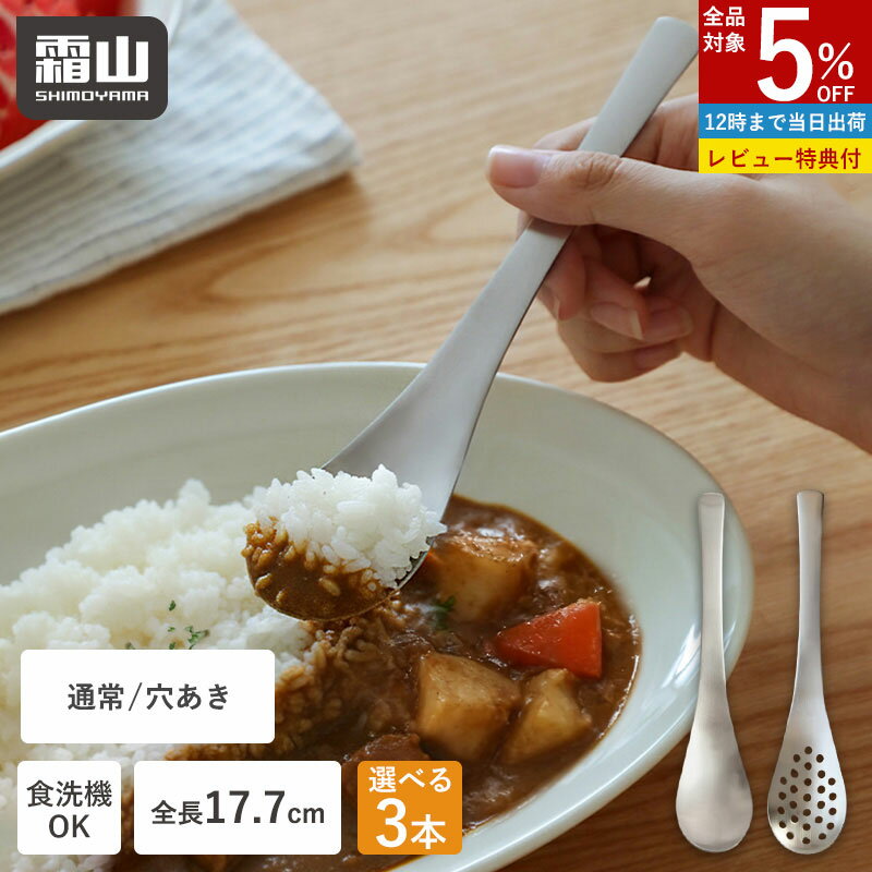 【全品5%OFF 18日限定】スプーン 穴あき 穴なし 3本組 選べる レンゲ ステンレス 食洗機対応 18-8 カトラリー レンゲスプーン 17.7cm 錆びにくい 普段使い 丈夫 おしゃれ シンプル 3本セット れんげ なめらか 中華 チャーハン スープ 霜山 特典付