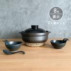 IH 土鍋セット 8号 2人用 セット 宴 黒 直火 おしゃれ 日本製 美濃焼 取り鉢付 れんげ付 鍋敷き付 送料無料