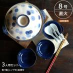 土鍋 3人用 セット 8号サイズ 水玉 深鍋 送料無料 直火専用 おしゃれ 日本製 取り鉢3個 れんげ3個 さいばし1膳