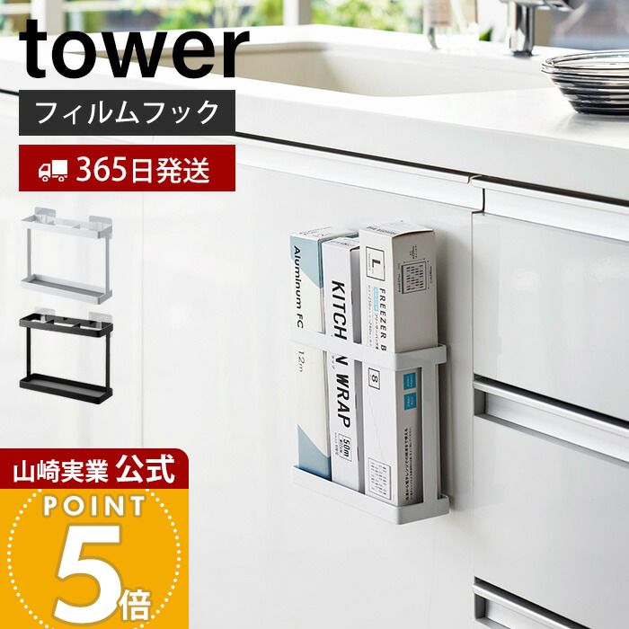 【5日はポイント最大10倍祭♪】ラップホルダー フィルムフックラップホルダー タワー tower ラップ 収納 ラップ置き 壁面収納 山崎実業 yamazaki ヤマジツ 省スペース 冷蔵庫 2163 2164 仕切り おしゃれ シンプル ラップ立て タワーシリーズ サランラップ アルミホイル