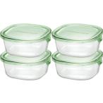 iwaki(イワキ) 耐熱ガラス 保存容器 グリーン 角型 S 450ml ×4個セット ごはん 1膳 パック&レンジ KC3240N-G