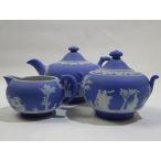 ウェッジウッド ジャスパー ペイルブルー ティーポット・シュガー・クリーマー 3点セット(6)内側釉薬有り