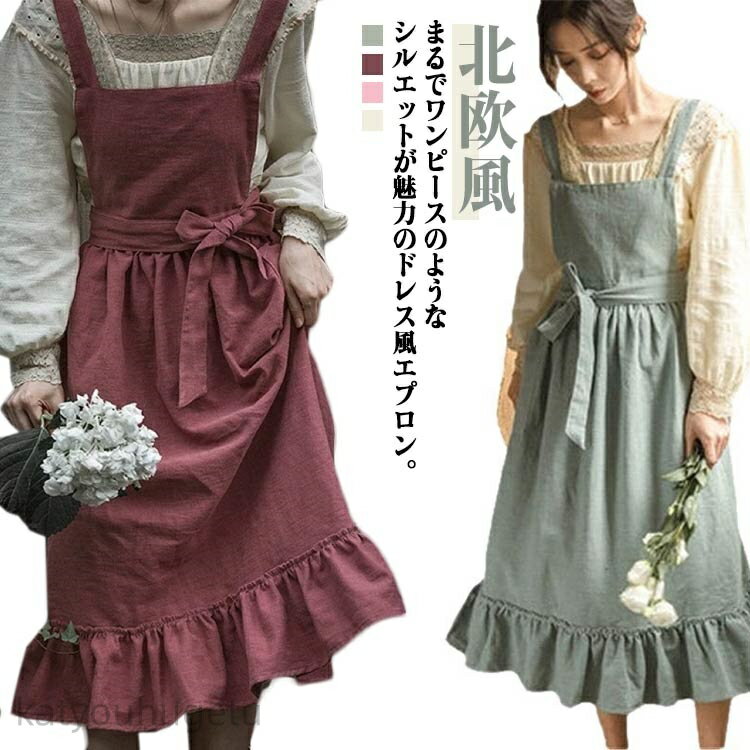 【時間限定10%OFFク一ポン】【送料無料】エプロン 北欧風 おしゃれ ワンピース かわいい フリル ドレスエプロン キッチンエプロン 料理教室 クッキング カフェ ロング丈 保育士 キッチン 美容師 園芸 家事 花屋 料理店用 パン屋 母の日 プレゼント 誕生日 ギフト 贈答用