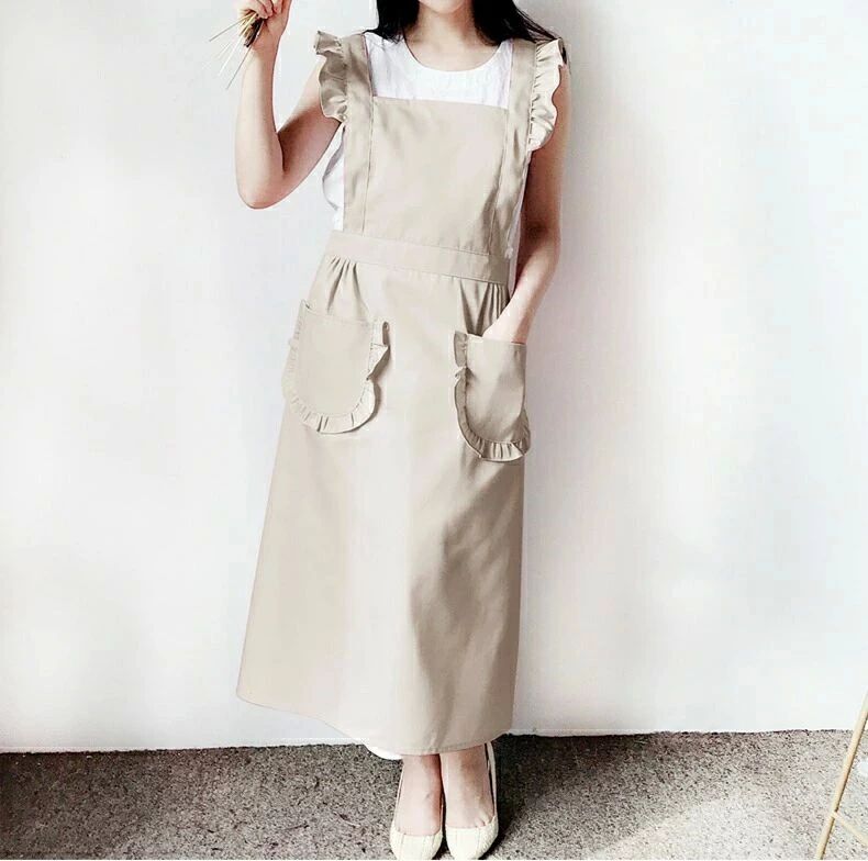 【3点15%offクーポン配布中! エプロン レディース 女性用 防水 防汚 膝上 フレア フリル 無地 メイド風 ワンピース風 サイズ調整可能 撥水 かわいい おしゃれ フェミニン