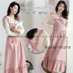 エプロン エプロンドレス レディース フリル リボン ワンピース風 エレガント かわいい 大人