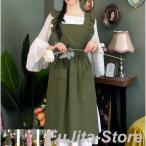 エプロン 大人可愛い 肩フリル おしゃれ お花屋 エプロンワンピース レディース 女の子 軽い 肩こりしない かぶり カフェエプロン シンプル 北欧 無
