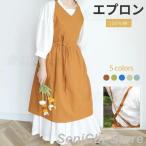 エプロン レディース フリル 布素材 メード ポケット付き シンプル 可愛い 無地 エプロンワンピース 花屋 ケーキ屋 カフェ