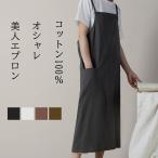 フリル エプロン かわいい おしゃれ ワンピース型 お尻が隠れる 綿100% 防水 ポケット付き 肩掛け ロング丈 レディース ワンピースタイプ リボン 北欧風