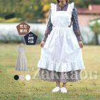 エプロン フリル 白 ロング 肩フリルレース レトロ バッククロス エプロンドレス ホワイト M-Lサイズ18232-14 上品 大人フォーマル 冠婚葬祭 法事 無地 たすき掛け かわいい おしゃれ ロリータ クラシック メイド ヒモ 後ろ ウェイトレス アイドル コスプレ 衣装