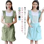 フリル エプロン エプロンワンピース 料理教室 カフェエプロン フリル ガーデニング コットン かわいい お姫風 カフェ屋