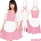 フリル エプロン バッククロスフリルいっぱい レディース カフェメイドコスチューム ホワイト/ピンク