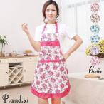 エプロン レディース 女性用 花柄 フラワー バラ ローズ フリル リボン ポケット付き プリント 総柄 かわいい おしゃれ 女子力