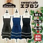 【送料無料】選べるサイズ パイピング付 cafeフリルエプロン M-L,LL-3L,4L-5L 大きいサイズ ガーデニング カフェ 可愛い クロスエプロン 前結び