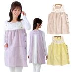 エプロン レディース ホームウエアトップス 切り替え レース 刺繍 ストライプ ギャザー 横ボタン ポケット 可愛い レモン&ライムチュニック(メール便可)