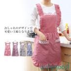 エプロン カフェエプロン 胸当てエプロン H型 レディース ポケット付き フリル レース チェック 格子柄 ガーリー 家庭用 キッチン用品 台所 料理