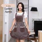 エプロン レディース 首掛け チェック柄 レース付き ポケット付き カジュアル かわいい 母の日 プレゼント 女性用 きれいめ おしゃれ