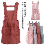 エプロン レディース かわいい ワンピース型 綿100% おしゃれ フリル レース ポケット付き 肩掛け キッチン カフェ風 料理教室 無地 ロング丈 北欧風 お姫様