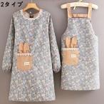袖付きエプロンレディースかっぽう着花柄レース耳付き韓国風後ろ開きポケット付き体型カバー可愛い大人用割烹着料理掃除おしゃれ
