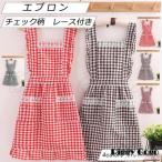 エプロン レディース 大人 家庭用 保育士 作業 防水 レース フリル チェック柄 ショート 料理教室 おしゃれ ポケット 可愛い