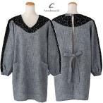 エプロンドレス ブランド ネイビー&サックスローブレースエプロン ARBR14 アームボーテ 無地 かわいい ワンピース エレガント 日本製
