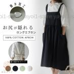 エプロン 綿100% レディース カフェエプロン おしゃれ かわいい ロング丈 保育士 軽量 無地 ギフト 母の日 シンプル ワンピース クッキング ガーデニング