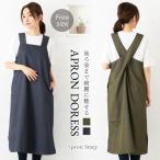 ワンピース エプロン 無地 北欧風 バッククロス リネン コットン 風 綿麻混 シンプルゾンチーおしゃれ ナチュラル すっぽり インテリア 敬老の日 快適