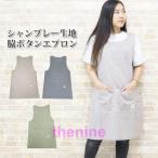 エプロン チュニック ゆったり かぶるタイプ おしゃれ シャンブレー 綿100% 丈夫 シンプル 無地 保育士 介護 かぶり 横ボタン ワークエプロン ナチュラル 作業
