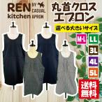 【送料無料】選べるサイズ無地丸首クロスエプロン M-L,LL,3L,4L,5L 大きいサイズ ガーデニング シンプル カフェ 無地