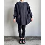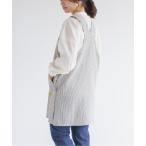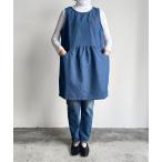 エプロン URT:切り替えデニムロング丈タックエプロン ワンマイルウェア