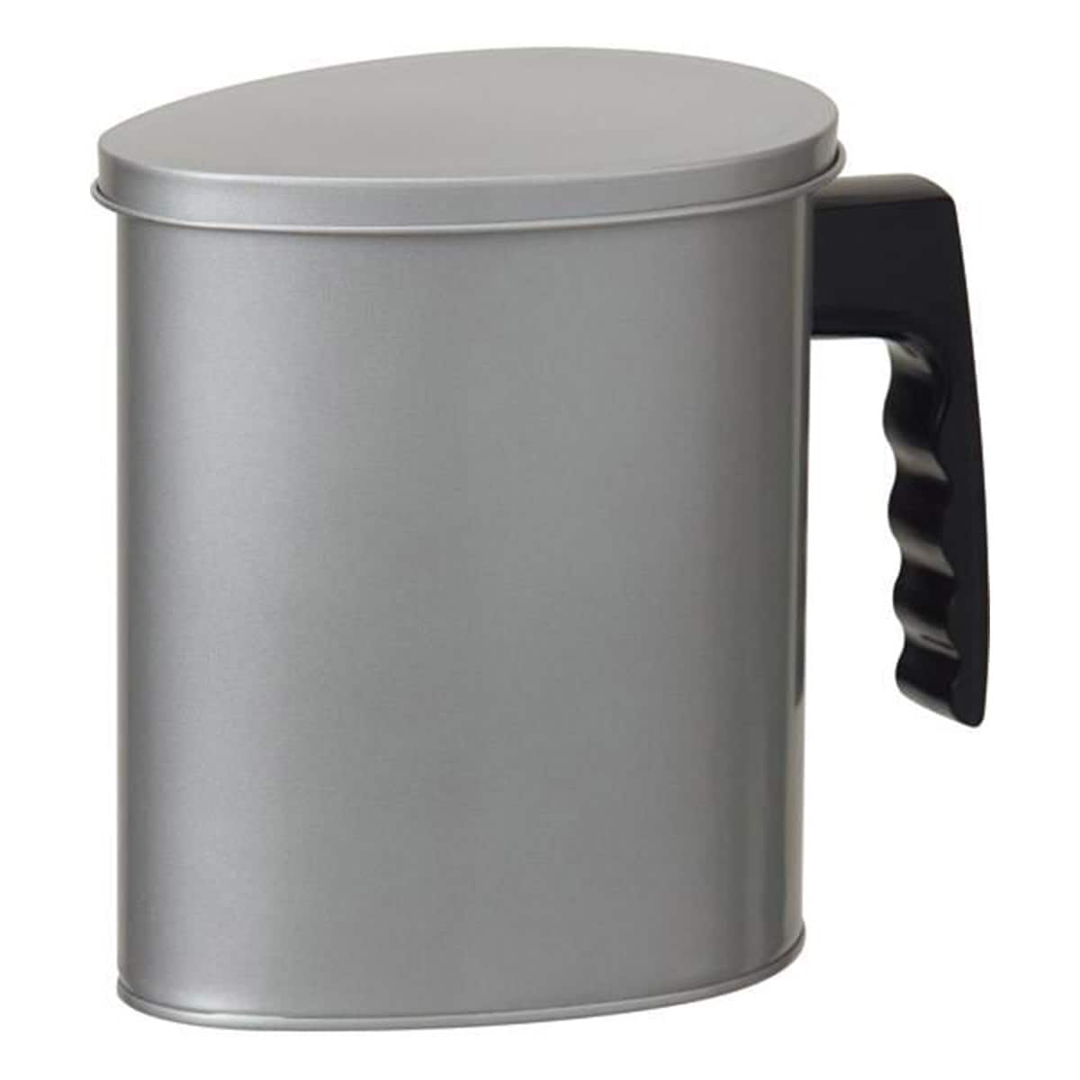 竹原製缶 オイル ポット 受皿付 フッ素加工 日本製 グレー 1.2L 油がはやく入る(主婦の発明) トルネードフィルター
