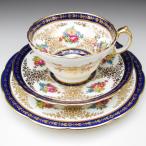 コウルドン 藍縁金彩花絵 トリオ カップ&ソーサー&プレート アンティーク 1905年 (f)