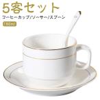 マグカップ コーヒーカップ 5客セット ゴールドライン入り 来客用 シンプル 小さめ 150ml ソーサー コンパクト セット 陶器 コーヒー スプー