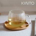 KINTO キントー UNITEA カップ&ソーサー 350ml 125mm ウィロー ( ガラス 天然木 耐熱ガラス 電子レンジ対応 食洗機対応 カップ ソーサー コップ )