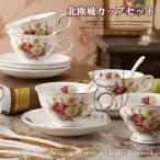 コーヒーカップセット 北欧 花柄 フラワー キレイめ コーヒーソーサーセット スプーン 3点セット 朝食カップ 優雅 来客用 誕生日 結婚祝い