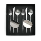 クチポール ゴア グレー デザートセット ナイフ フォーク スプーン + カトラリーレスト 8点セット ギフトボックス入り Cutipol GOA セール 爆買
