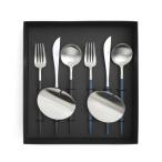 クチポール ゴア ブラック&ブルー ディナーセット + カトラリーレスト 8点セット ギフトボックス入り Cutipol GOA