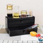 箸箱 箸入れ 2点セット カトラリーボックス カトラリー収納 大容量 卓上 飲食店 自宅用 フォーク 調味料置き 引き出し式 水切り シンプル ブラック 料理屋 食卓
