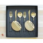 クチポール ゴア ブラックマットゴールド デザートセット + カトラリーレストゴールド 8点セット ギフトボックス入り 正規販売代理店 カトラリー 結婚祝い 爆買