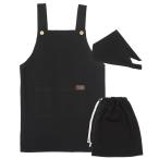 エプロン子供用 キッズ 三角巾 巾着バッグセット しわになりにくい エプロン 黒 小学生 首掛け 無地 シンプル エプロン 着脱簡単 収納バッグ付き 男女兼用