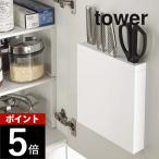 山崎実業 tower 包丁&キッチンばさみ差し タワー ホワイト 3848 キッチン 台所 収納 包丁差し 包丁ケース 扉裏 タワーシリーズ シンク扉