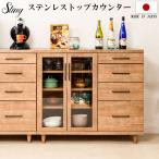 ステンレストップ 間仕切り 引出 キッチンカウンター 幅105 木製 キャビネット 収納 キッチンラック 日本製