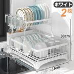 水切りラック シンク上 水切り 食器置き 2段 水切りかご ステンレス シンクサイド 水が流れる 大容量 カラトリーボックス付き 食器 水切りかご