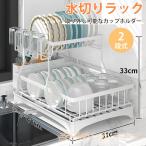 水切りラック シンク上 水切り 食器置き 2段 水切りかご ステンレス シンクサイド 水が流れる 大容量食器 水切