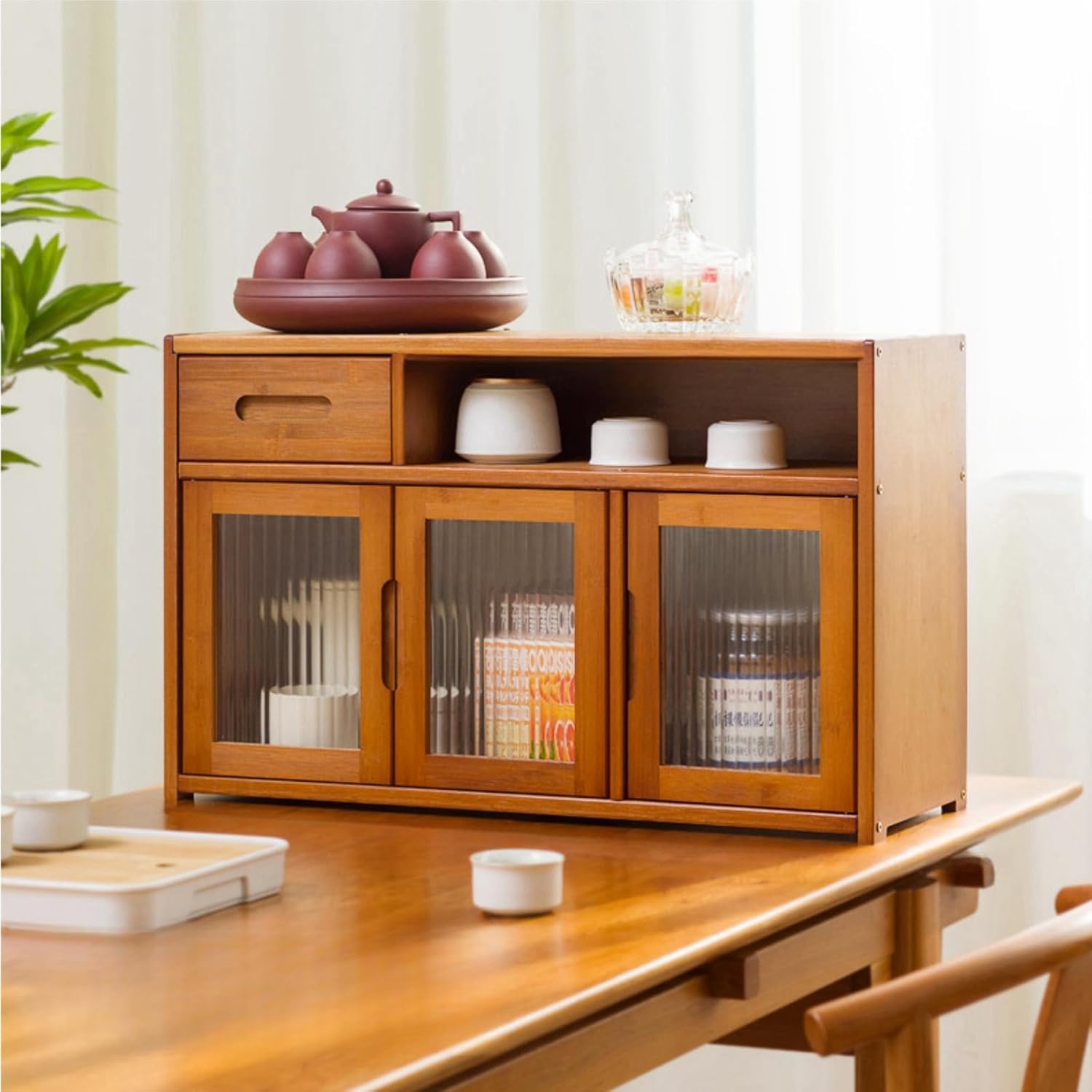 ミニ食器棚 北欧 卓上食器棚 キッチン収納 キッチンカウンター キッチンキャビネット カップボード 和風 調味料 お椀 箸 小物 おしゃれ スパイス 台所収納 防塵 スタイル2 引き戸 収納ボックス