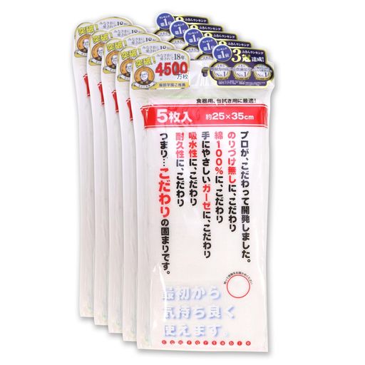 サンベルム(Sanbelm)綿100%キッチンクロス綿ガーゼふきんホワイト25x35m5枚入x5セットビストロ先生服部先生ご推薦蛍光染料不使用K06900