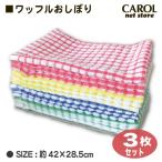 おしぼり カラフルワッフルおしぼり 3枚組 キッチン雑貨 キッチンクロス アカ イエロー グリーン ブルー メール便