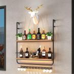 工業用壁掛けワインラック、ガラスホルダー付きフローティングワイン棚、多機能ワインキャビネットディスプレイラック、工業用素朴なパイプ 農家 キッチン 装飾(